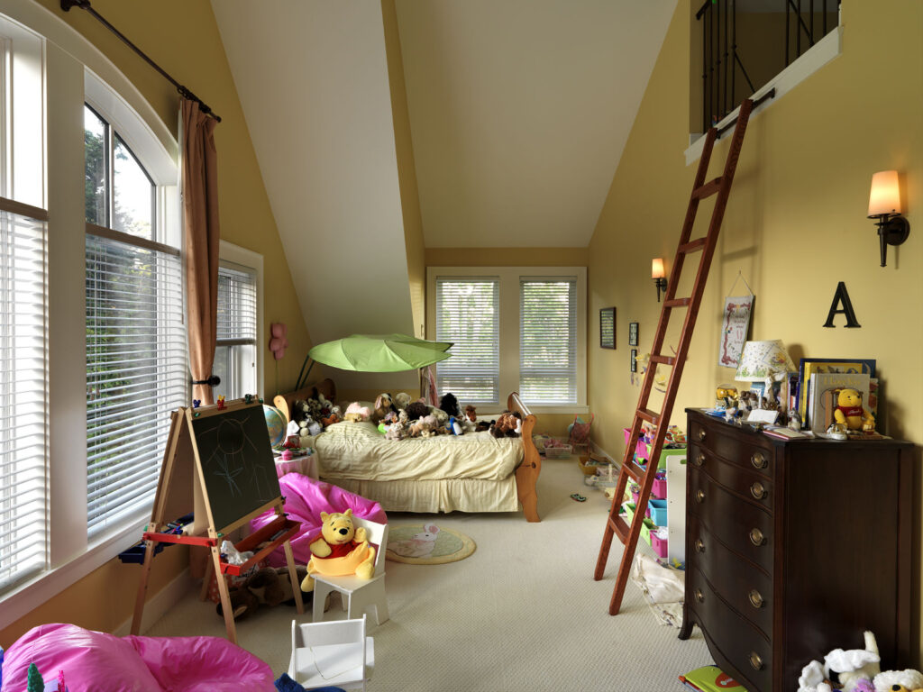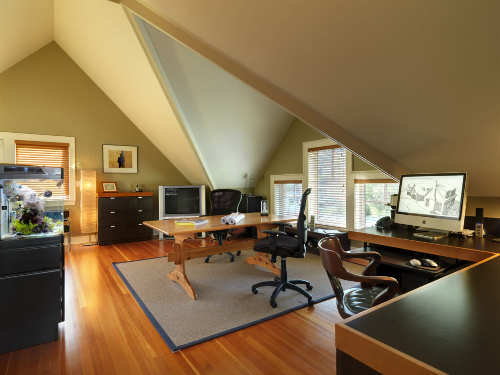 In order to save on costs and reuse materials, Chris utilized purely salvaged timbers to create full dimensioned wood fascia boards. The high sloped roof profile made for vast vaulted ceilings that provided the perfect opportunity for a large bedroom with a loft for Chris’ young daughter.