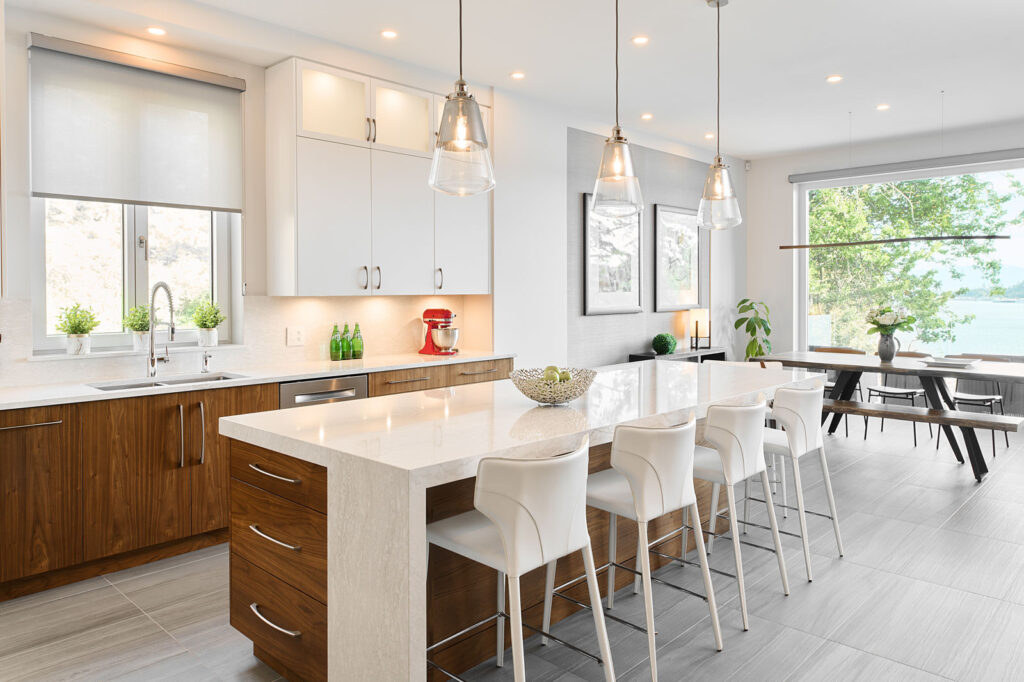 A contemporary waterfront custom home in the heart of Victoria BC, cleverly designed to gently transition with the sloping landscape. As custom home builders, we pride ourselves on creating open concept plans where indoor and outdoor spaces flow seamlessly while taking maximum advantage of water views.